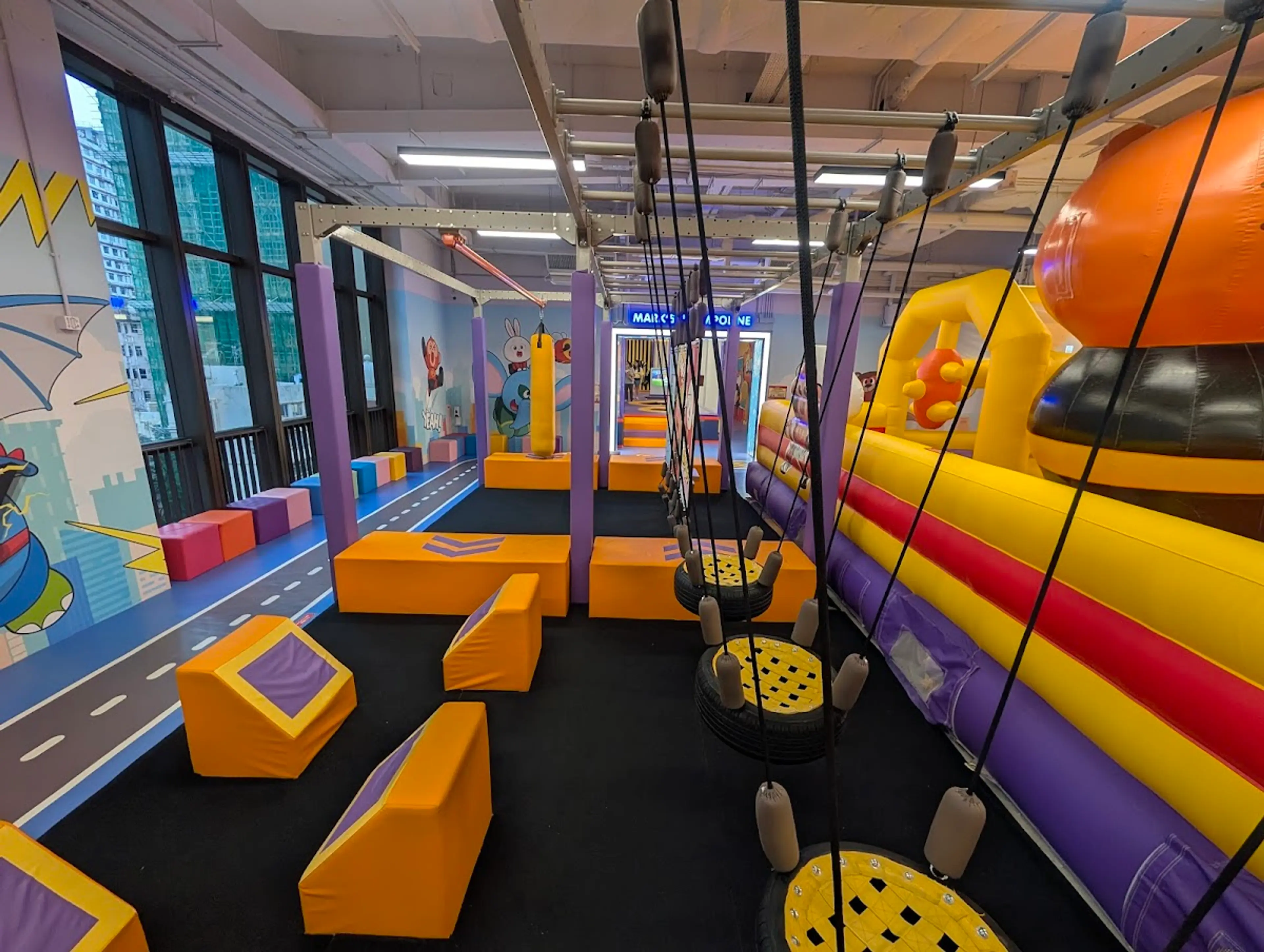 合和中心Kiztopia,佔地17,000平方呎為全港最大分店。設有18個超級英雄主題區域、8米高空飛索。